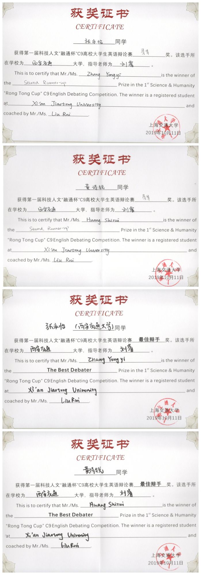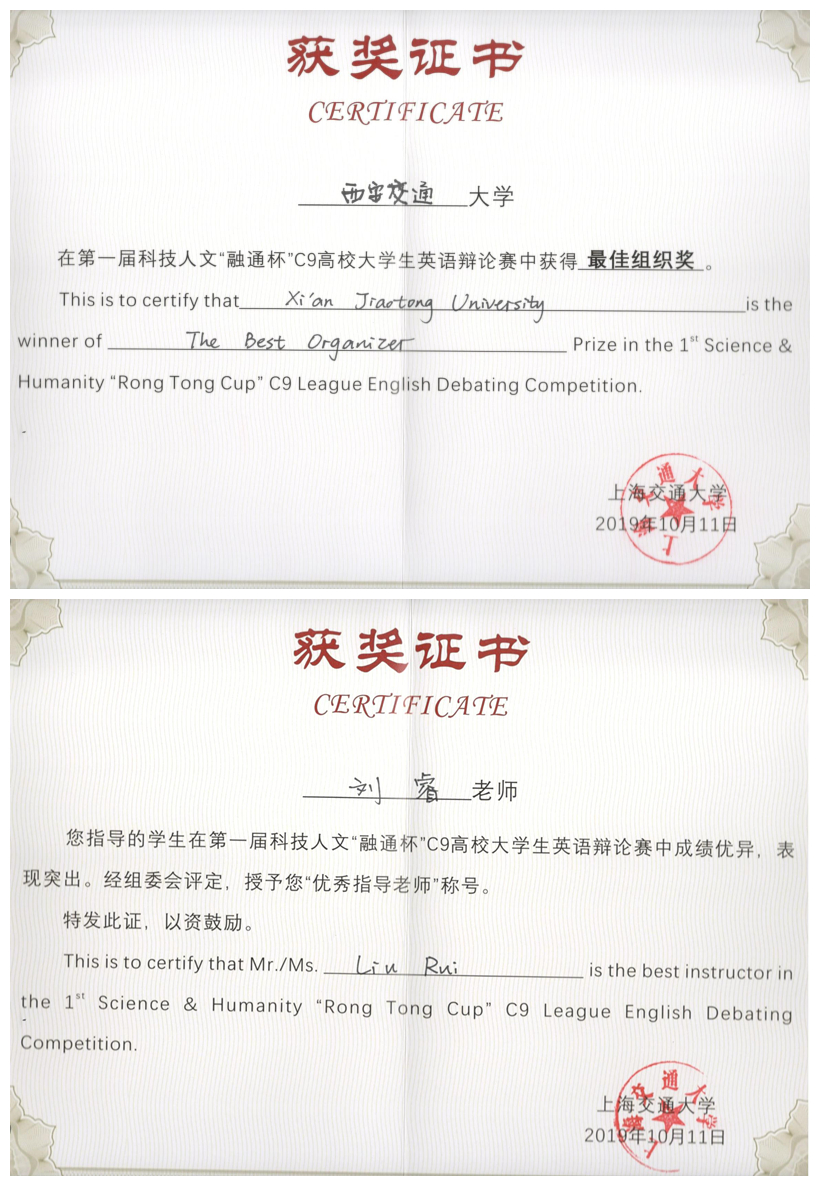 刘睿老师指导下,经过四轮积分赛,以总分排名第二的成绩进入决赛,最终赢得季军奖杯,并双双获得“最佳辩手”称号。黑料网