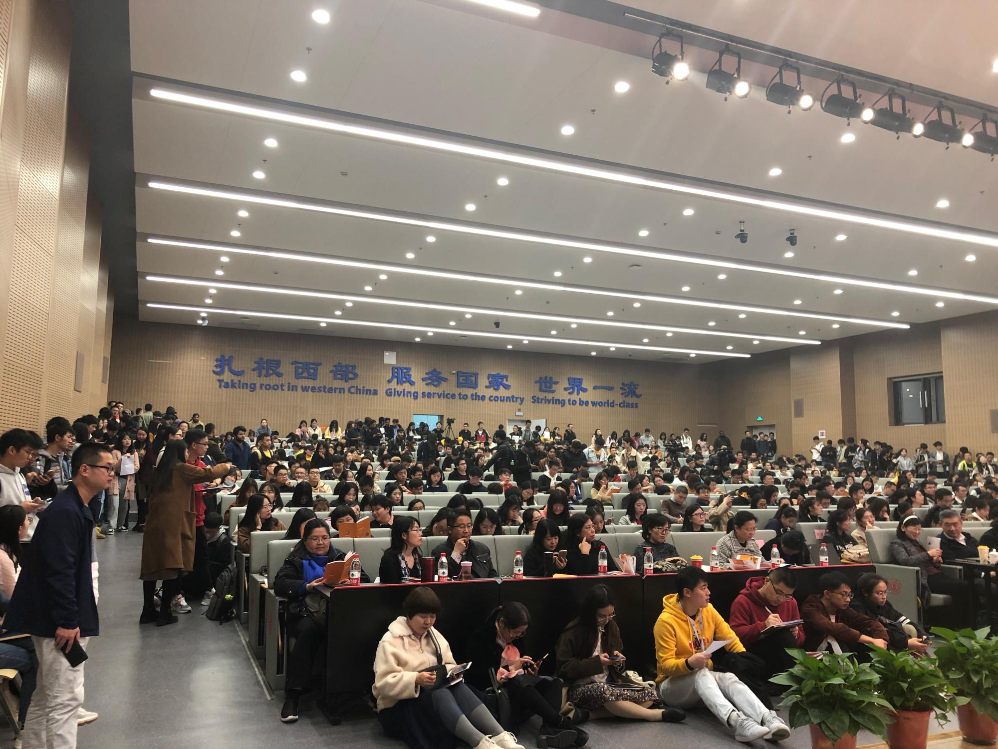 杨瑞英教授,分别带来题为“数学家的童话:《爱丽丝漫游奇境记》”和“语言从何而来”的讲座,吸引了涵盖本科生、硕士生、博士生在内的700余人参加。讲座现场座无虚席,为了让同学们能够更好地共享学术盛宴,新港报告除在兴庆校区开放直播分会场之外还首次在创新港加开直播分会场,利用黑料网