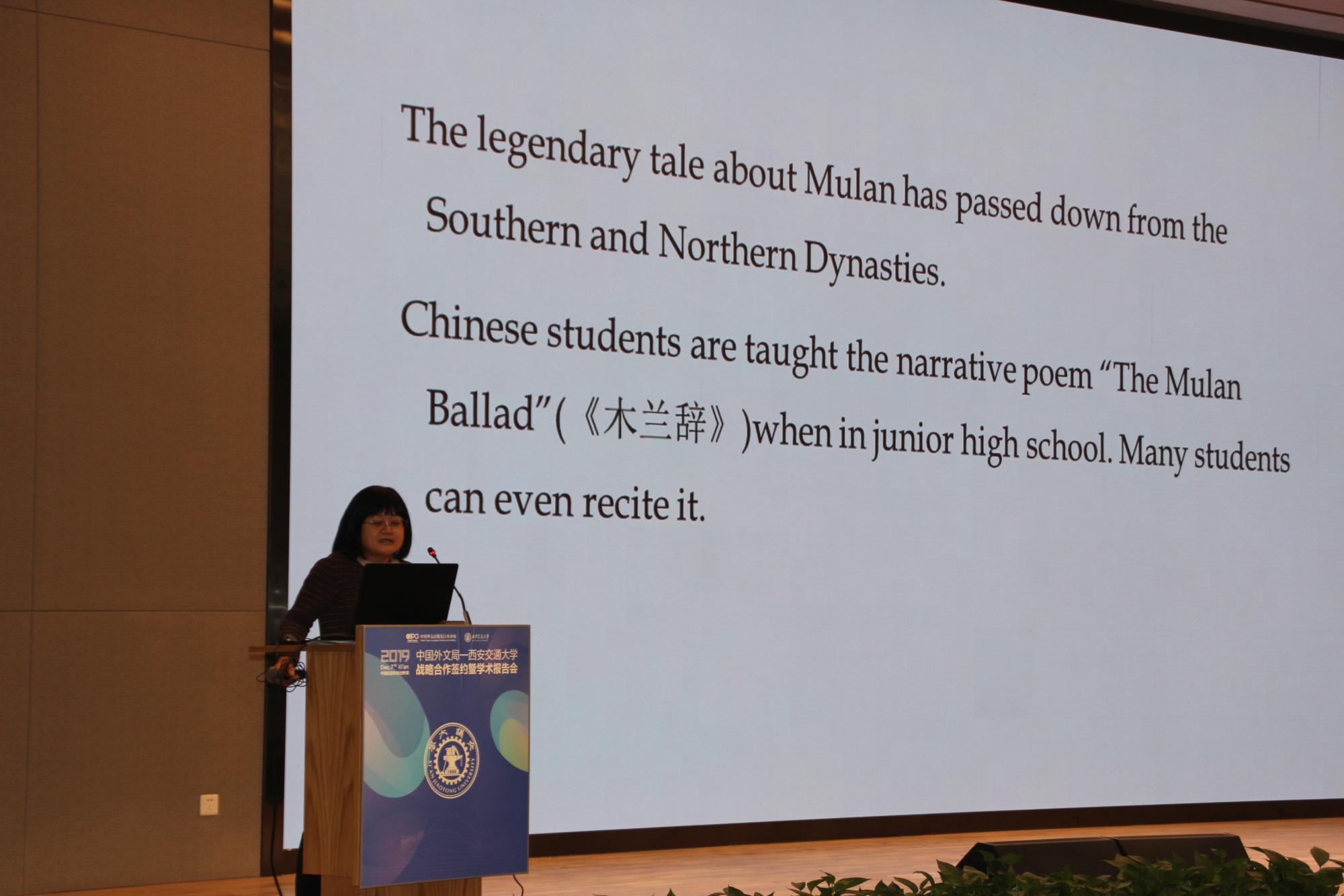 杜丽霞副教授,耕耘的领域涵盖美国文学、圣经研究、英汉文学翻译。此次讲座从《木兰辞》文本开始,讲述了汤亭亭的《女勇士:一个生活在鬼魂中间的少女的回忆录》中描写了自己作为华裔夫妇的长女在美国移民家庭成长过程中遭遇的种种困惑与创伤,受到中华传奇女子花木兰等中国英雄人物事迹激励而走出族裔与性别歧视的双重困境,最终成长为女勇士的故事。1998年美国迪士尼公司推出了动画电影《木兰》。讲座讲述中国的木兰在汤亭亭的代表作《女勇士》和迪士尼电影《木兰》中的变换,分析变换背后的深层动因。最后,杜老师鼓励学生利用语言媒介将更多中国经典故事更好地呈现给世界。