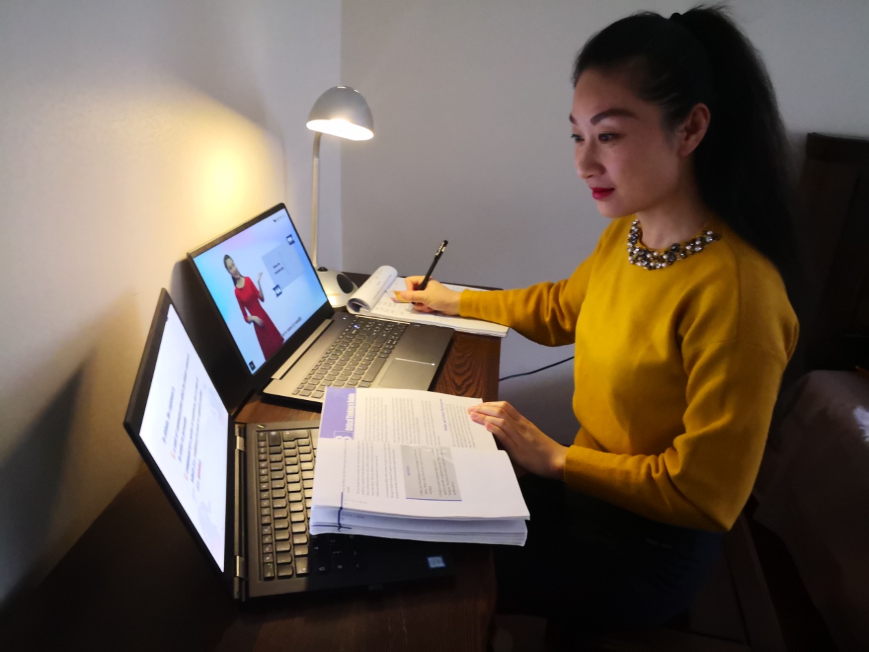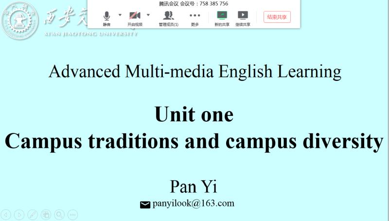 “高级视听说”课程组在学校和学院提供的技术培训的基础上,多次组织本组教师通过视频会议讨论雨课堂、腾讯会议等的使用方法,进行实际操作演练,并向有需要的教师提供帮助。这个过程虽然比较辛苦,但以特殊方式把大家凝聚在一起,是一次难忘的经历。课程组的潘一老师说,线上教学中,教师必须重视并且善于及时了解学习者的状态和需要,同时要善于有效利用新的教学平台激发学生的学习兴趣,鼓励他们积极参与课堂活动。