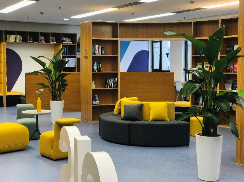 “于书无所不读,凡物皆有可观”,这也是语言文化及国际交流研究中心设计“不言书屋”的理念。步入书屋,一股墨香扑面而来,半圆的弧形书架巧妙的将位置隔开,星星点点的软垫又把共享的距离拉近。书屋的墙面上悬挂着八种语言的诗歌,八种不同的文化跃然纸上。“语言就是一种文化,书屋的英文名是“Muses & Library”,希望我们的书屋像巴黎的莎士比亚书屋那样,让到来的人都感受到书籍和语言的魅力”。
