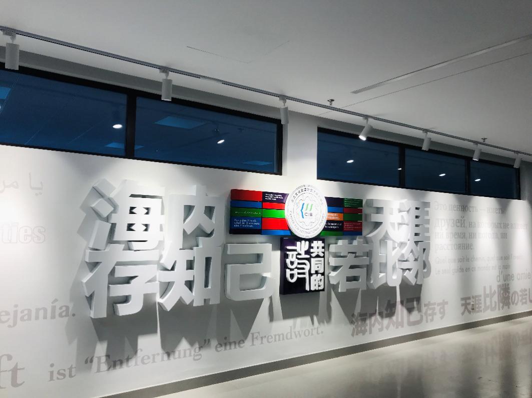 休产假一回来,张颖就撸起袖子投入了创新港研究平台和文化建设的工作中。与理工科不同,外语学科的方方面面都渗透着文化交流与互鉴。“我们既是引进西方先进文化的桥梁,更要做中国传统文化走出去的使者”。语言文化及国际交流研究中心正是结合了这样的特点,精心设计了以甲骨文“言”字为主题的研究中心文化。一出电梯,就能看见研究中心大厅的墙上用八种不同语言呈现了“海内存知己,天涯若比邻”这一欢迎词,而墙的另一面则是全院210位中外籍教职工的笑脸。“每一个人都是创新港研究中心大家庭的一份子,在这里,我们强调共享、共建、共创,外语人就是要具有国际视野和创新思维”。