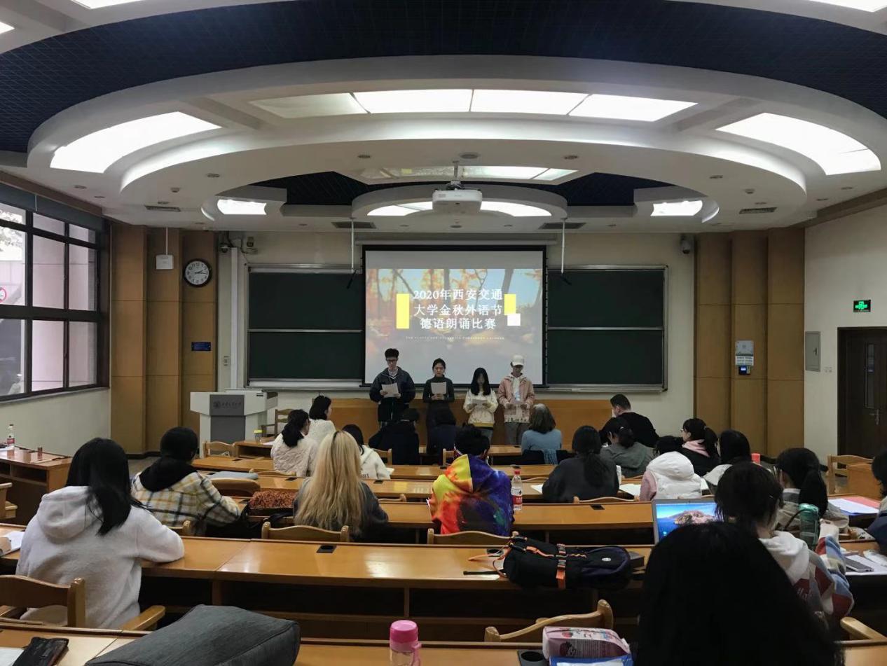 第十八届金秋外语节德语朗诵比赛暨英德双语方向学习经验交流分享会在主楼B103教室隆重举行,本次大赛旨在激发学生对第二外语的学习兴趣,促进学习效果,并为所有热爱德语学习与交流的学生提供一个平台。本次比赛得到西安歌德学院的大力支持。