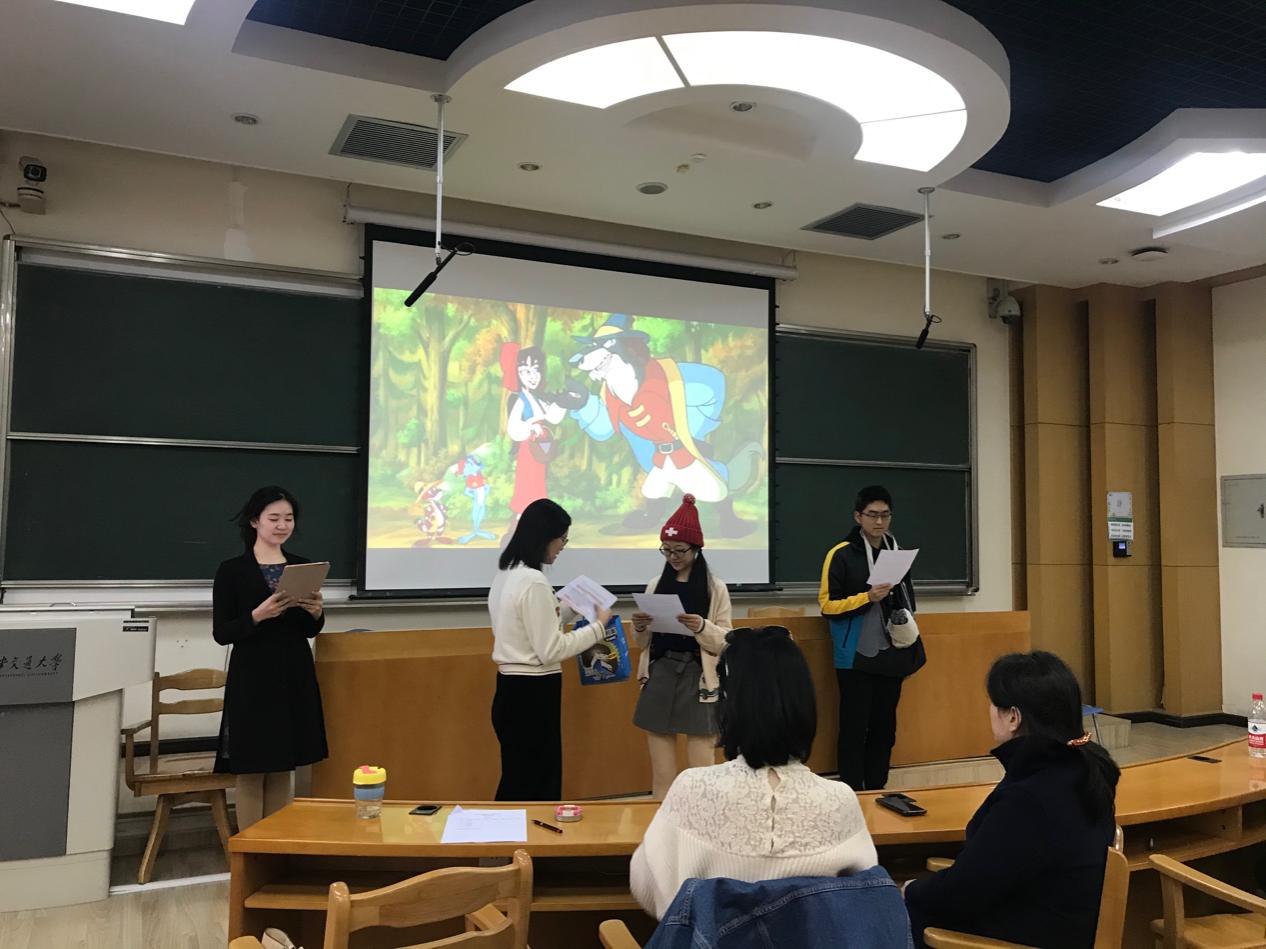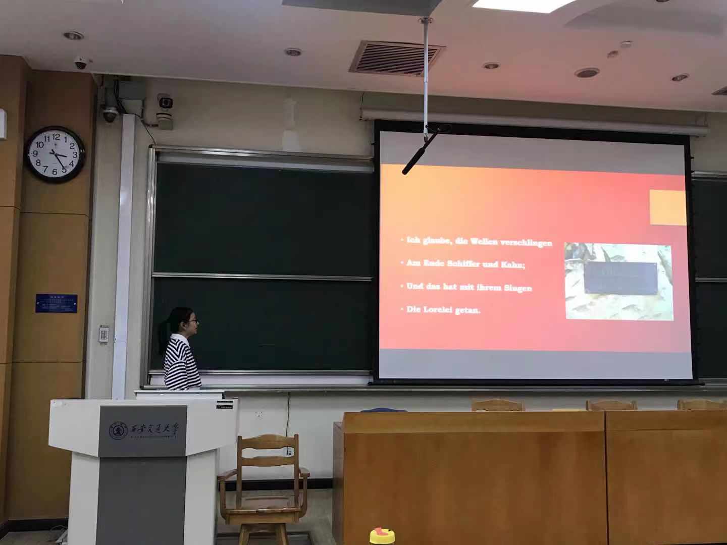 德语选修班的同学也实力不俗,来自人文学院的贾芸汀同学带来了德国诗人海涅的经典诗歌《Die Loreley》,她用流利的口语为我们介绍了Loreley的地理位置,在朗诵中还加入自己优美的歌喉,吟诵出莱茵河边一位美丽女人的哀怨与叹息。