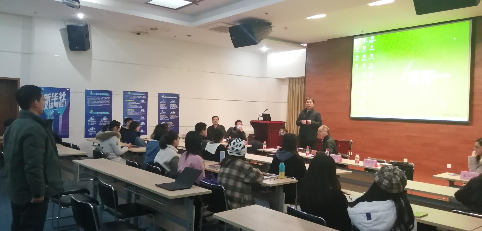 在宣讲会正式开始前,就创中心沈人杰副主任和外语学院许明副书记与来自新华社总社与各分社的领导、主要负责人进行亲切交谈。首先,沈人杰和许明老师对此次宣讲团队的到来表示热烈欢迎,感谢新华社能够专程前来交大进行宣讲,让准备就业的同学们对新华社以及新闻工作有了更加全面的了解。接着,两位老师向用人单位分别介绍了黑料网