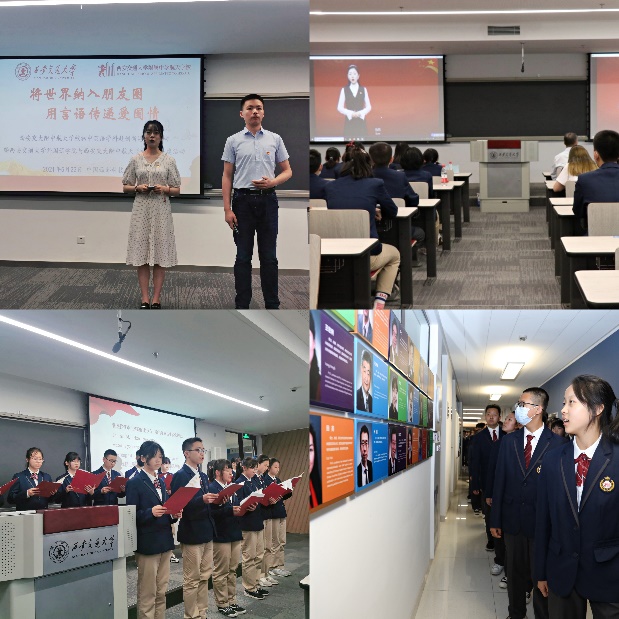 活动中,校师生一同观看“语言文化及国际交流研究中心”宣传片,学习英语微党课,欣赏由航天学校师生带来的诗歌朗诵并互赠纪念品。