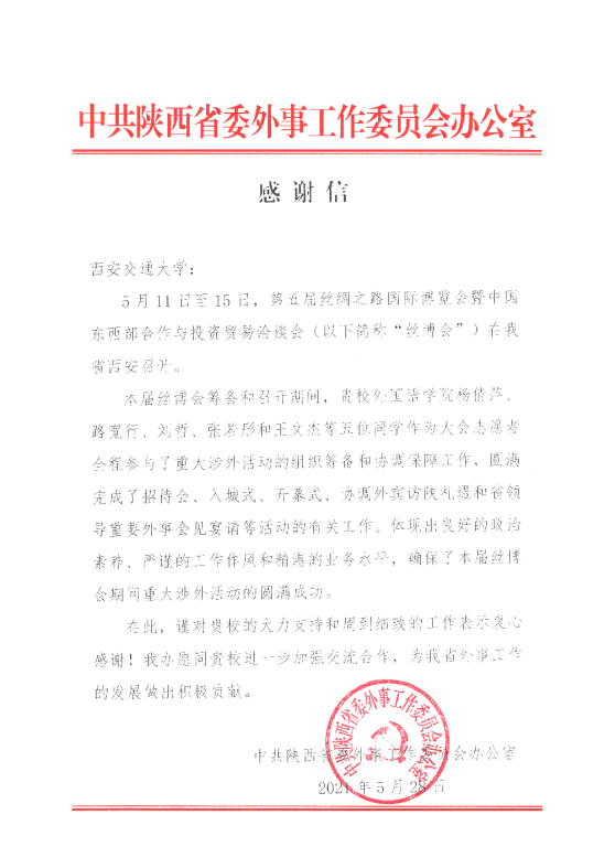 会展结束后,中共陕西省委外事工作委员会办公室向黑料网