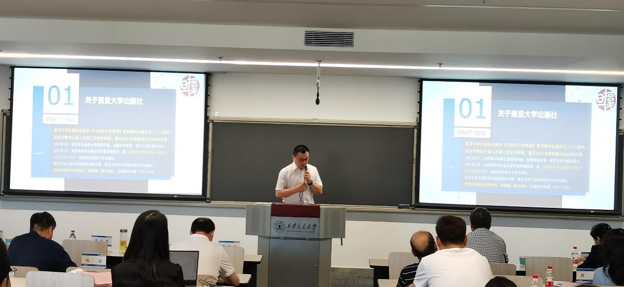会议期间,复旦大学出版社营销编辑闫明军对复旦大学出版社外语分社的优秀资源,与陕西社科联高等教育学术合作课题情况进行了分享介绍。批改网副总裁兼西北大区负责人张博先生作题为“批改网从智能批改到混合式教学服务”的分享等。