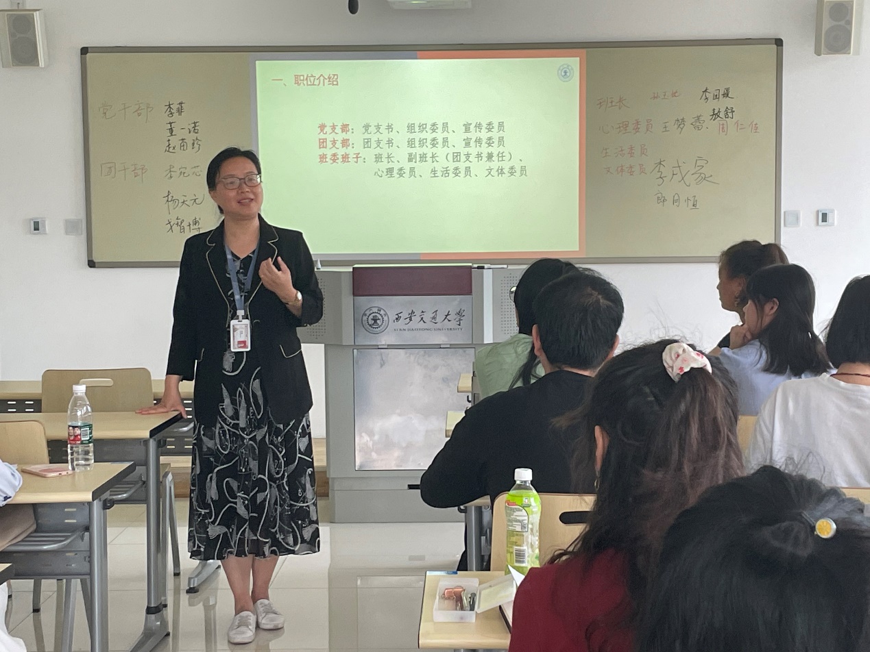 在薛璇玑老师的主持下,同学们首先开始自我介绍,现场气氛热烈活泼。来自五湖四海的同学们通过介绍家乡、爱好、参加过的活动等内容让周围同学们认识自己,每个人表现大方,朝气蓬勃,彰显出对未来新生活的美好憧憬和满满的活力。
