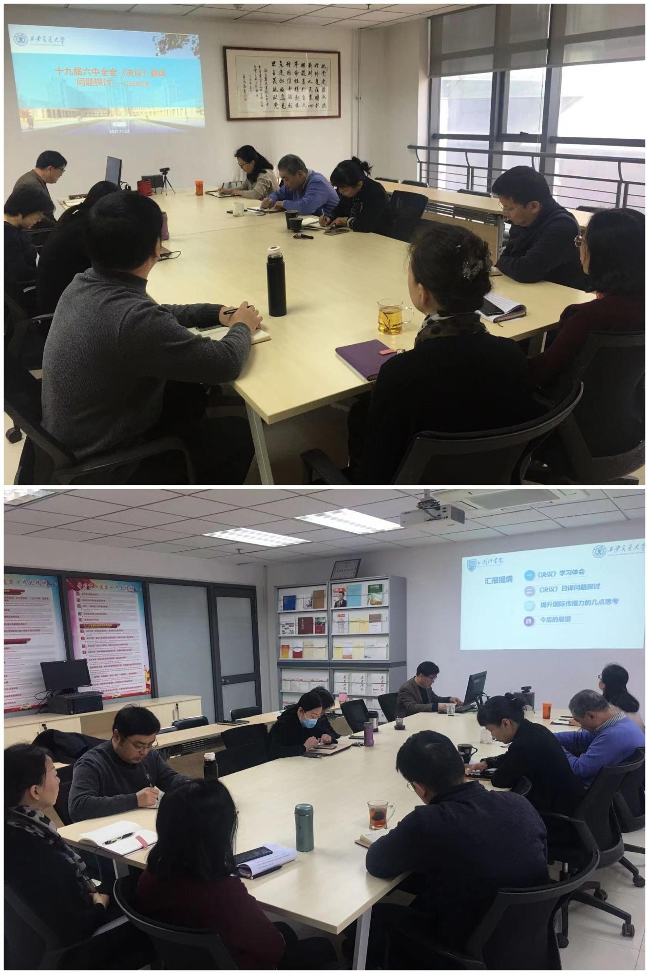 与会人员围绕贯彻落实《决议》精神、学科建设、翻译人才培养、国际传播能力建设等问题开展深入交流讨论。