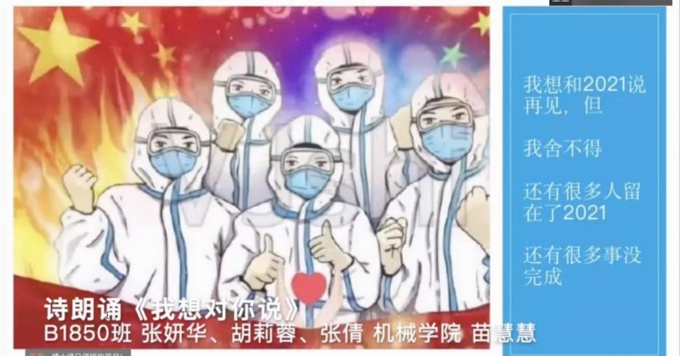 以线上形式举办了一场别开生面的新年联欢会,节目形式多样,精彩纷呈,从舞蹈、合唱到朗诵、配音表演,为观众们打造了一场绝妙的视听盛宴。老师和同学们还通过视频分享了自己对于新年的期盼和祝福,整场联欢会洋溢着热情温暖的气氛。