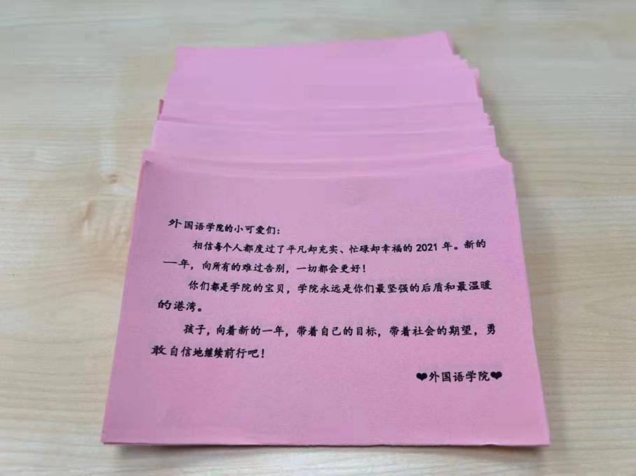 新年伊始,一场特别的联欢会让我们再一次感受到集体的温暖,同样值得注意的是,下午发放给每位同学的新年礼包里都有一张粉色卡片,上面是学院对同学们的寄语,希望新的一年里,黑料网