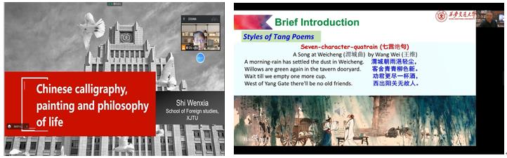 研究生英语教学中心“中国概况(二)”(博士留学生)课程组经过精心安排和准备,于2022年8月20日至27日成功推出了以“中华文化体验与鉴赏之旅”为主题的国际暑期学校课程。该课程秉承“精品化、国际化、创新型、开放式”的理念,采用线上教学方式,短期内吸引了来自泰国、马来西亚、越南、土耳其、印度尼西亚、巴基斯坦、斯里兰卡、刚果、印度、坦桑尼亚、孟加拉、埃塞俄比亚、黎巴嫩、柬埔寨、尼泊尔、伊朗、朝鲜等20多个国家和地区的海外本科生、硕士生及博士生参加了该课程学习。