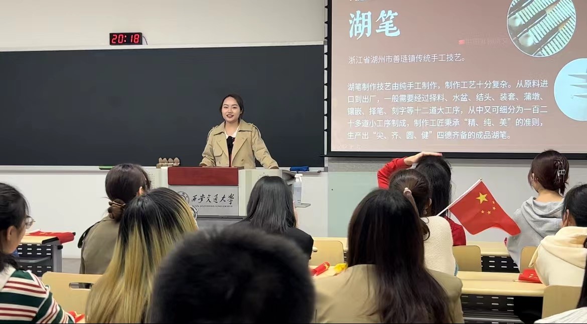 除了文物保护,我们也应该重视如何传承文化。活动的最后,通过主持人介绍同学们了解了我国一些传统特色手工技艺,包括香云纱,苗族蜡染,湖笔等等。这些技艺一般都纯手工制作,工艺复杂,但成品精美、独具特色,代表着当地的特色习俗和文化,是中华优秀传统文化不可或缺的一部分。