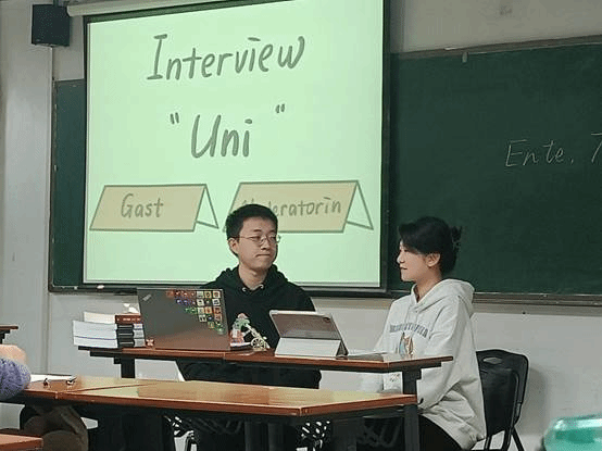 英德专业和人文学院汉语言专业共计13名学生参加比赛,俄德语系教师何小超、邹莹、钟游和外教Sebastian Degen担任本次比赛的评委。