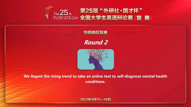 第二轮的辩题讲述了如今网络上充斥着各种心理测试的现象,随着现代人的心理问题愈发成为一个普遍多发状况,这种简便的测试方法一方面提高了普及率以及社会关注度,另一方面在准确性和科学性上存疑,并且还有进一步耽误病人就医的风险。