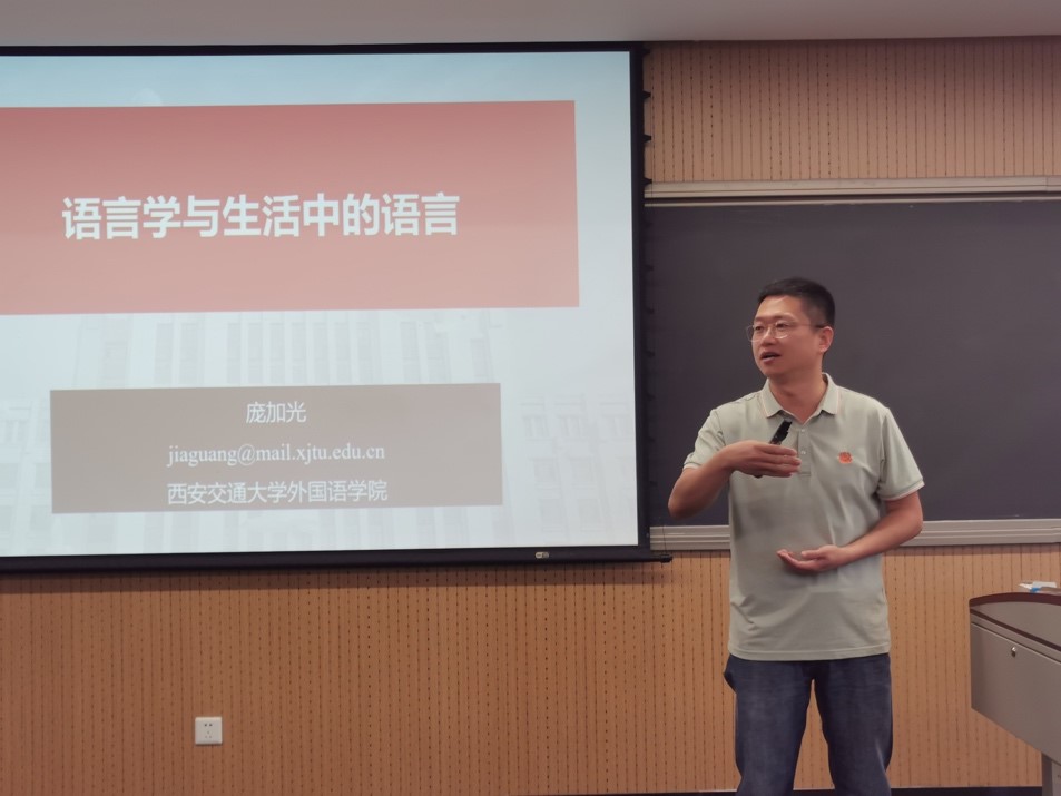 庞加光教授的讲座主题是《语言学与生活中的语言》。他将日常生活中常见的语言现象和语言学中的重要理论紧密联系起来,深入浅出地向同学们讲解了语言学的抽象概念以及近当代语言学研究的方向,引导同学们领悟“语言学”的学科内涵。