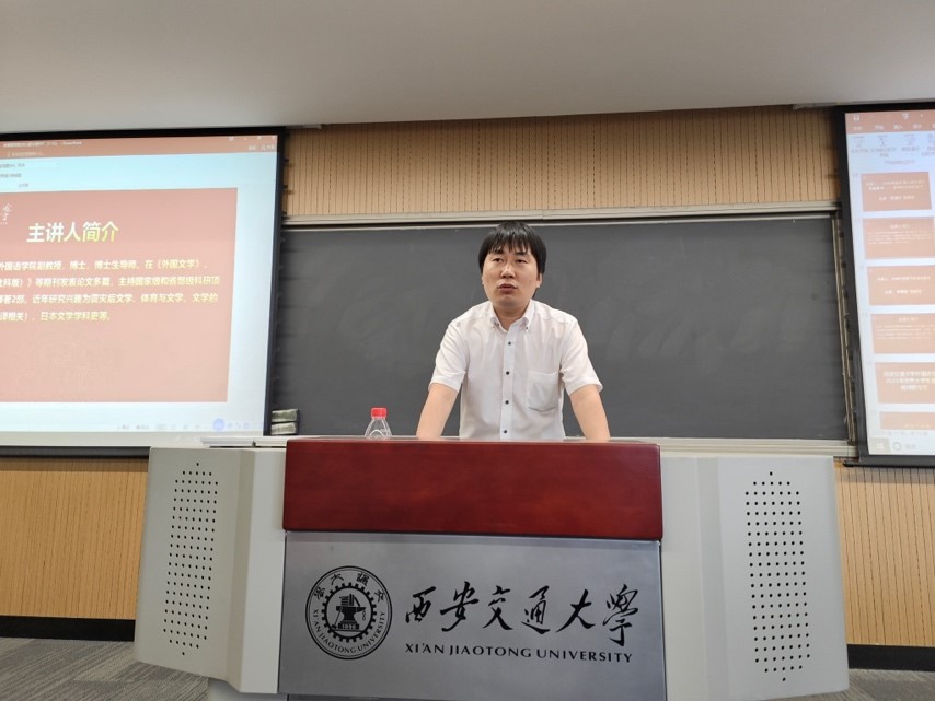 时渝轩副教授讲座的题目是《1960年的天皇小说与两次笔祸事件——文学的历史化研究。他以独特的视角为同学们讲解了文学研究的如何将作品结合其历史背景进行分析,从而更深刻地理解作者写作的内涵意义,跳出单纯分析文学作品本身的局限性。