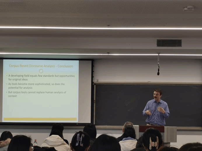 Paul Baker教授则以“Corpus-Based Discourse Analysis”为题,介绍了语料库分析在语言学研究中的应用,以大量实例展示了语料库分析技术在探索语言使用规律、揭示社会话题和认知趋势方面的独特价值,引发了与会者们对语言研究方法的思考和探索。