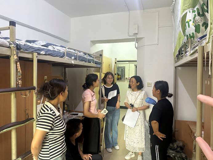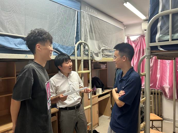 走访老师实地考察了学生住宿环境和设施,与新生及家长们亲切交流,代表学院对新生表示热烈的欢迎。走访期间,老师们详细询问了报到情况、生源情况、来校适应情况、入校需求以及新生们对专业的理解和选择意向等,并给出了有价值的建议和指导。叮嘱同学们遇到困难时主动与辅导员、班主任沟通交流,共同解决问题,勉励新生们好好学习,尽快融入学校大家庭,开启丰富充实的大学生活。