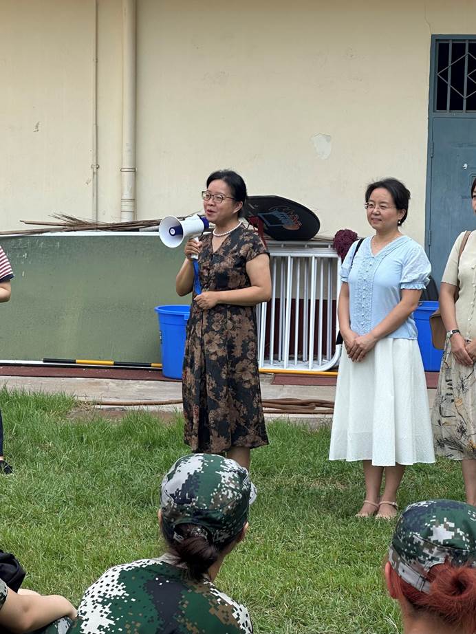 党委副书记许明,英语系主任彭凤玲,日语系副主任曹红荃,2024级本科生班主任孟丽娜、沈丽芳、王晶、曹兴谭以及组织员徐阳,来到学校田径场代表学院开展军训慰问活动。承训教官、学院军训带队教师范璐以及2024级全体本科生参加了本次活动。