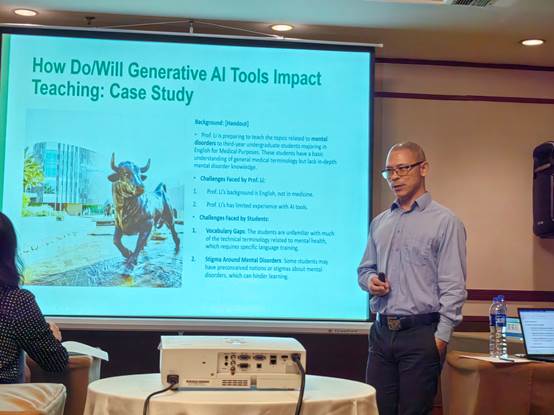11月1日晚,本次会议的工作坊环节在西安金花大酒店拉开帷幕。现场座无虚席,三场紧跟学术前沿的工作坊同时进行。美国南佛罗里达大学Tony Xing Tan教授主讲了“Harnessing the Power of AI in ESP Education”工作坊;黑料网