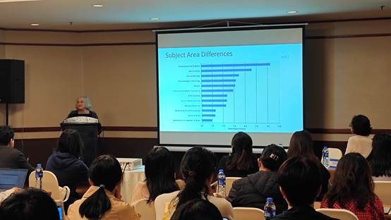 钱希教授带来了“知识图谱、数字人及AI工具在EAP教学中的应用”工作坊;英国考文垂大学Hilary Nesi教授则主讲了“Writing for Journal Publication: An Editor's Perspective”工作坊。在工作坊进行过程中,参会代表与主讲人互动热烈,现场学术氛围浓厚。大家都表示工作坊主题前沿、方法专业,理论与实践结合紧密,收获颇丰。