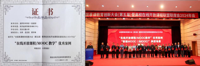 大会由教育部高等学校教学信息化与教学方法创新指导委员会指导,高校在线开放课程联盟联席会主办,并由高校计算机教育MOOC联盟等27个联盟类组织承办。会议的核心目标是展示我国在线开放课程数字教学资源与教学改革的优秀案例,推广“X+在线开放课程”和“AI+课程教学”的典型应用场景,挖掘特色应用,发挥示范引领作用,积极推动多模态智慧教学实践,拓展高校教学与人才培养的新途径。“通用学术英语(技能篇)”案例经过学校推荐、陕西省高等教育MOOC中心评选,推荐至高校在线开放课程联盟联席会参加最终遴选,经过激烈的角逐,最终获评“在线开放课程/MOOC教学”优秀案例,该奖项在全国高校在线课程领域极具影响力。