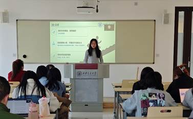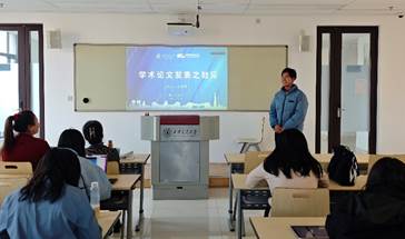 B2348班王晓晨则以“学术论文发表之拙见”为题,为在场观众分享了学术论文发表经验。王晓晨风趣地说到,论文发表大多遵循“扎根基层——反复练习——成为巨星”的底层逻辑。随后,他从如何阅读文献、学习研究方法、追踪研究热点等方面为大家总结了技巧。王晓晨表示,要学会寻找自己的模版论文,同一方法反复练习,同时也要与时俱进,迭代模版;要坚持写作,不断成长,做一个长期主义者,脚踏实地。此外,还要保持谦卑、理性创新,更要饮水思源,常怀感恩之心。