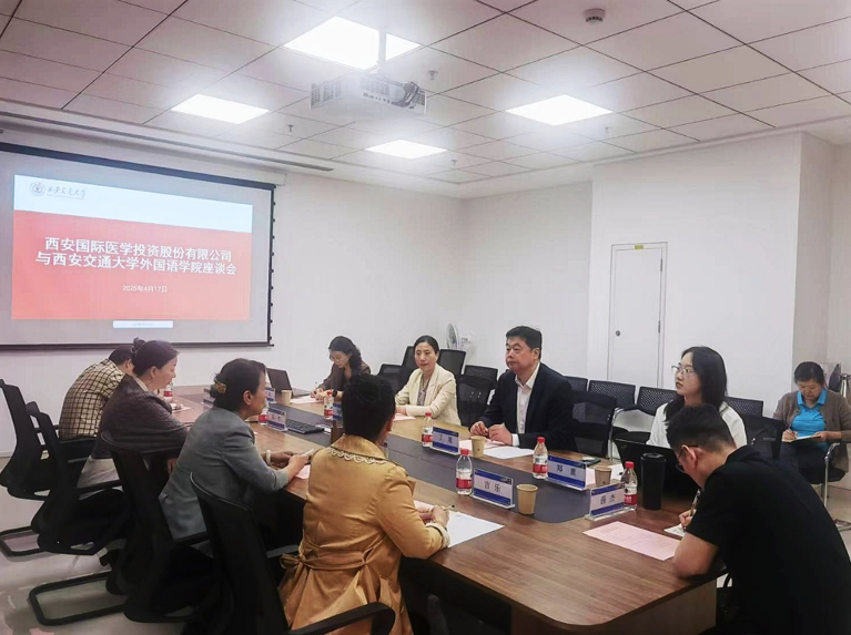 进行洽谈。他指出,企业发展迫切需要“语言+医学”复合型人才,建设研究型医院和研究型大学的目标高度契合,双方应在跨境医疗服务等领域开展深度科研合作,共建校企联合人才培养基地,实现人才供给与产业需求的精准对接。