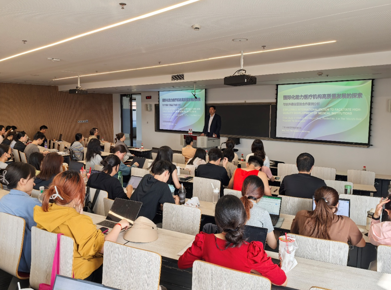 会后,丁震为学院师生做题为“国际化助力医疗机构高质量发展的探索”的专题讲座。他结合自身三十年的工作履历,系统梳理了我国医疗产业政策演变路径,深度剖析了西安国际医学的发展历程、国际化实践以及未来战略布局。他特别强调医疗卫生事业高质量发展离不开国际化人才的支持,激励在校学生要以正念、利他精神为指引,在跨学科融合中找准发展定位。