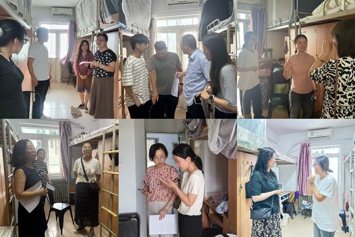 当日下午,一场暖心的宿舍走访活动如期开展。学院党委副书记许明、副院长李莹带队,英语系副主任曹浩煊、日语系副主任沈丽芳、法语系常务副主任曾珠,与2025级新生班主任刘睿、张莉、孙莉、樊静薇、邹敏,组织员徐阳一道,在彭康书院辅导员赵睿婧懿的陪同下,逐个宿舍看望新生。