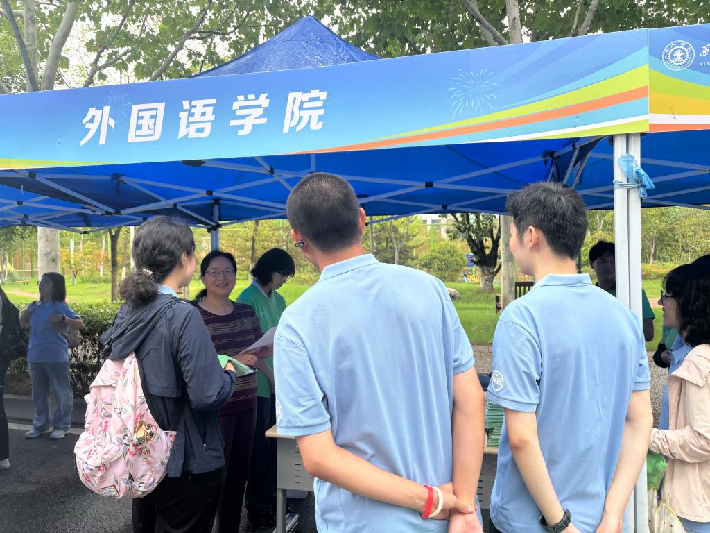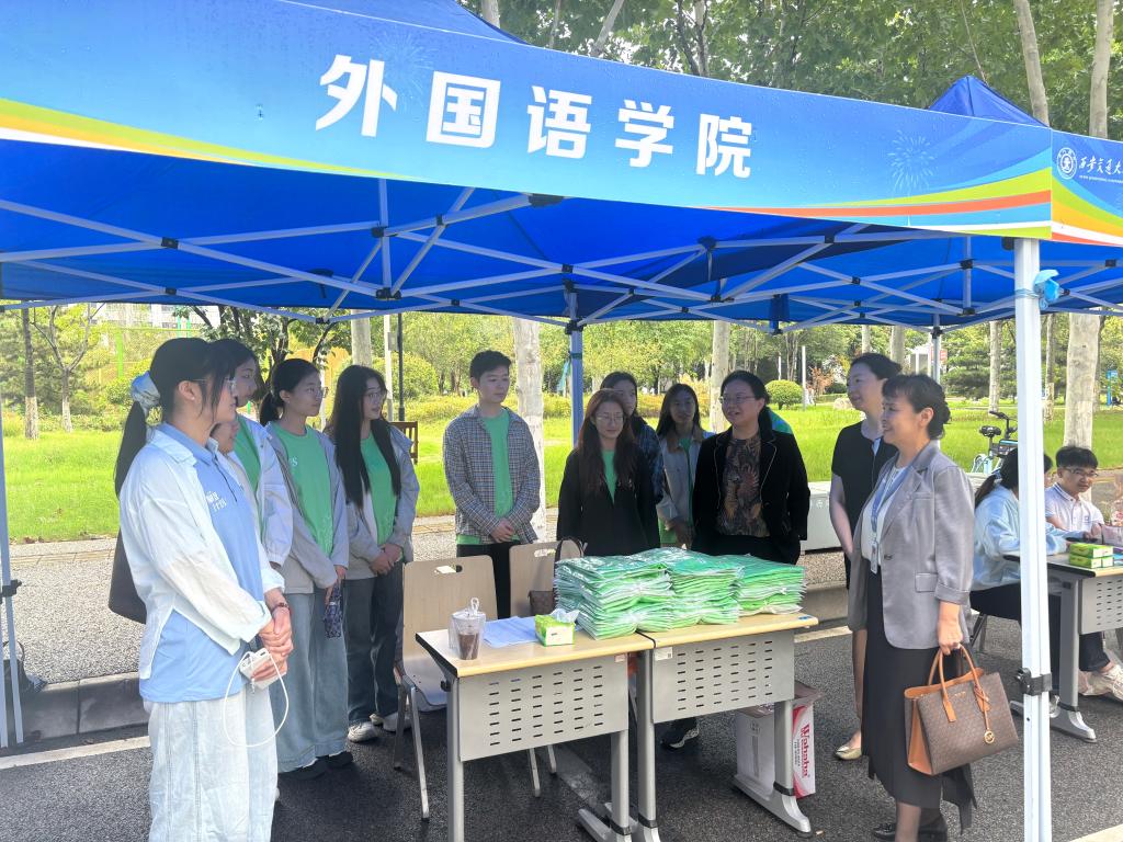 张立群校长、洪军副校长、王欢副书记一行来到学院迎新点位亲切慰问一线工作人员和志愿者,院长陈向京汇报了迎新工作筹备情况、新生数据信息和学院人才培养情况。张立群校长对学院专业发展和人才培养成效给予肯定,提出要深耕语言研究文化土壤,培养更多高素质的语言研究人才。