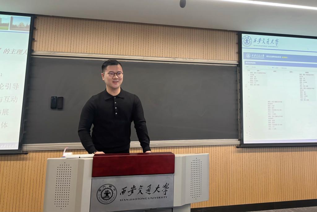2023级硕士生王嘉慧作为高年级研究生代表,分享了个人读研期间的学习体悟,鼓励新生珍惜在交大校园的求学时光,积极尝试、主动交流,结合个人实际尽早确定职业发展规划,做到情绪自洽,平衡好科研学习和日常生活。