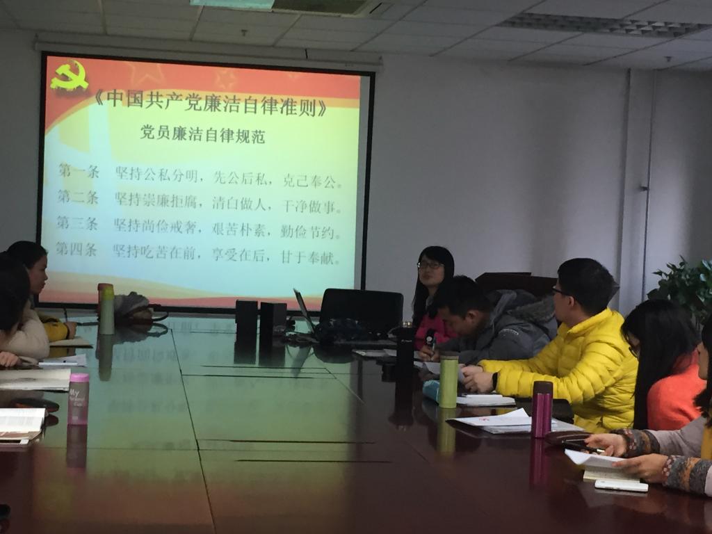 为帮助支部党员更好地关心和了解时政,提高理论学习的针对性和实效性,党员发展表决结束后,支部以“微党课”的形式组织在场党员进行学习。组织委员刘洋结合交大迈向“双一流”的发展实际和自身体会,与全体党员分享学习了《推进世界一流大学和一流学科建设总体方案》。他谈到,创建中国西部科技创新港,推出MOOC选课(在线开放课程),以及学校获得本年度教育部高校科研成果六项一等,日益频繁的国际化交流等都是学校近期发展的“大动作”,亦为“双一流”建设的有效支撑。宣传委员邓甜领学了“学准则,学条例”,“准则”即“中国共产党廉洁自律准则”,“条例”即“中国共产党纪律处分条例”。其中,中国共产党廉洁自律准则又分为“党员廉洁自律规范”和“党员领导干部廉洁自律规范”两种规范。她提到,学习准则及条例的最终目的是希望广大共产党员能够以身作则,坚持廉政的作风,始终坚持共产党的领导,彰显为人民服务的宗旨。
