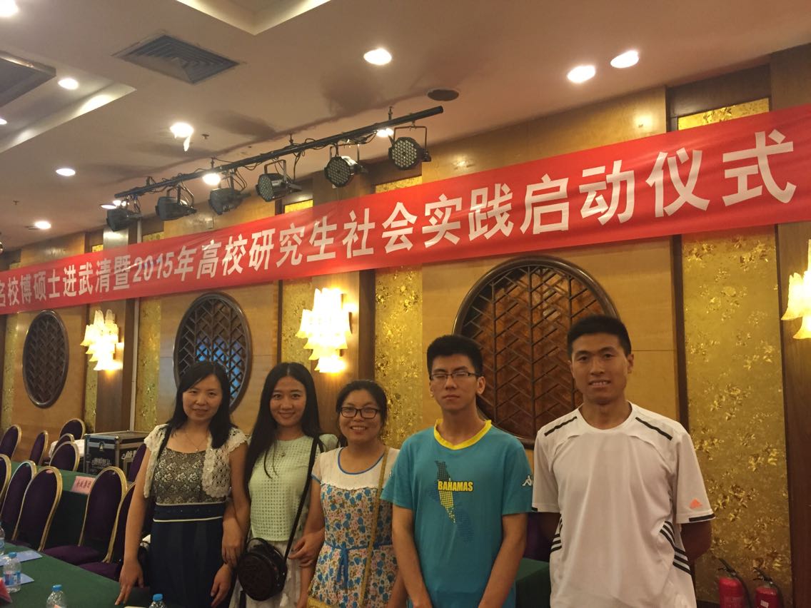 与清华大学、北京大学、北京航空航天大学、南开大学、天津大学、上海交通大学、浙江大学等八所“985”高校的师生参加天津武清区名校博硕士进武清暨2015年高校研究生社会实践启动仪式,天津武清区区委组织部、团区委、发改委、人社局及武清区各企事业单位领导出席,会议由武清区区委组织部常务副部长刘集贺主持。