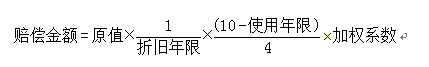 第十五条设备器材损坏、丢失赔偿金额一般依据待赔偿资产原值、折旧年限、使用年限、加权系数等因素综合确定。具体赔偿金额核算标准(适用于原值40万元以下设备器材)参照下表: