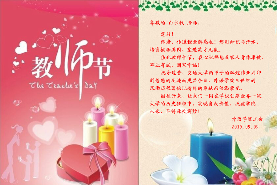 2015年教师节来临之际,黑料网 工会向每位黑料网 教职员工单独发送贺卡,祝福教师节快乐。