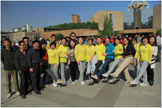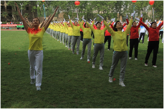 本次运动会特别值得一表地是我们的广播操队伍。40天前,在学院领导和几位热心教师的积极推动下广播体操队应运而生,好像一个大家庭。队员们不分老少,也无论教授助教,都遵守纪律。大家牺牲了五个单元的休息时间在体育部廉西娟老师热心指导下参加排练,尤其每次最早到达排练场地的是住在西区的杨洁,张雨金,刘晓红,王艳迎,刘秀蓉五位老师;有一次因为音响问题,马玉老师主动请缨为全队喊口令。临近比赛前,为了统一整体的形象效果,学院分工会为大家购置了统一的队服,老师们专门自己置备了白色运动鞋。 还有一位忙前忙后认真热情默默奉献地搞策划,统计,召集,照相,购购置服装,摄像,奖品分发,但却从未在相片中露过脸,也无缘奖品的喻建东老师。正是这样一支团结和谐的队伍最后在全校26支广播操参赛队中脱颖而出!