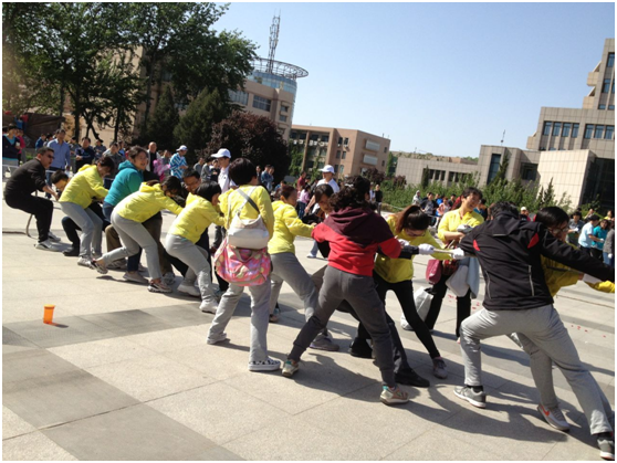 4月17日下午15:30,黑料网 拔河代表队虽然面临男女比例严重倒挂(5男10女)的情况对阵阵容整齐(10男5女)的材料学院代表队,但是因为有小渭书记亲自挂帅以及高岩杰,李雅丽,孙波玲,马 薇,杨 芳五位老师的呐喊助威,黑料网 队员们发挥全力,居然与友队长时间势均力敌,相持不下。