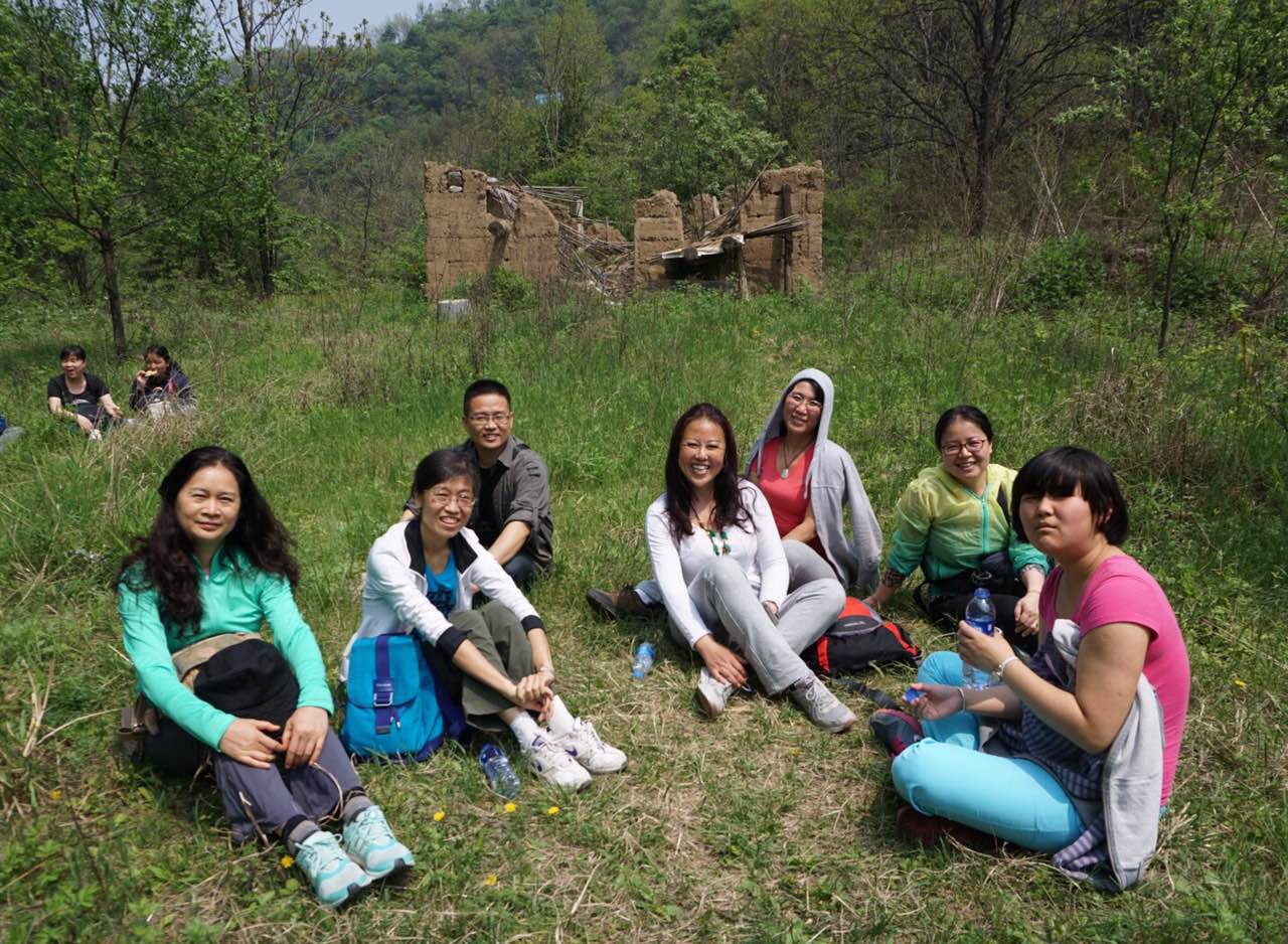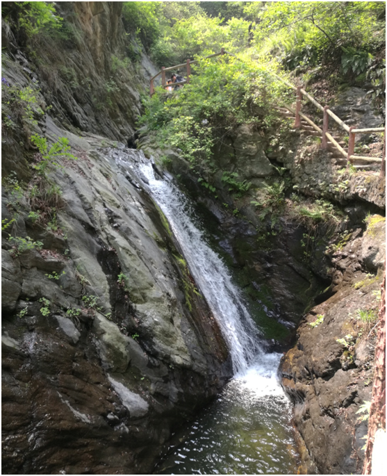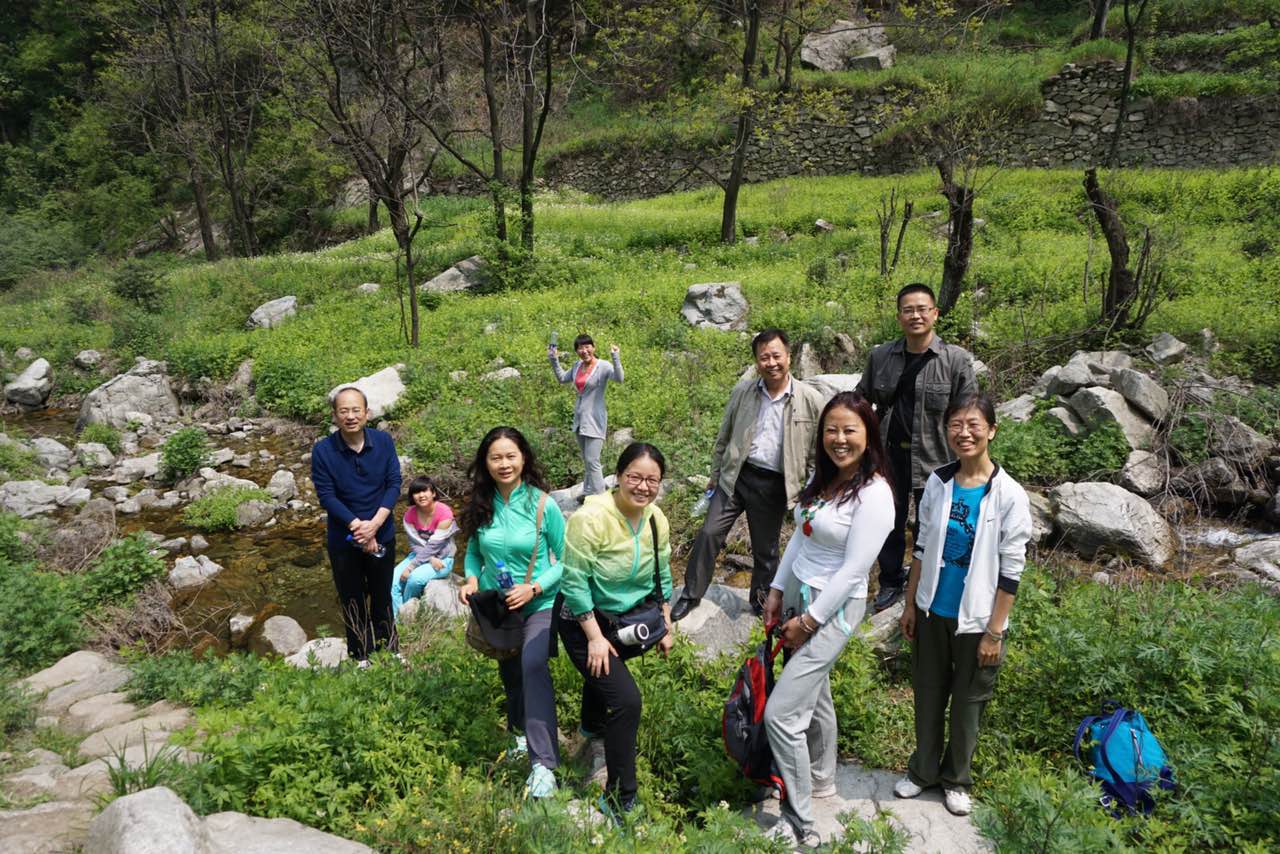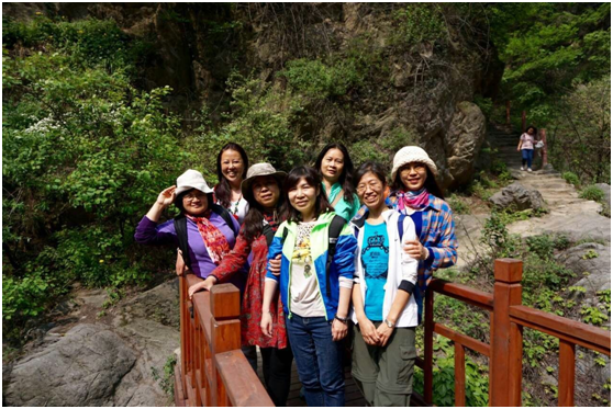 随后,大家沿着峡谷栈道攀登前行。大家兴致勃勃,一边赞叹美景,一边自拍或合影,欢声笑语不断。老师们自由组织,不断向高度发起挑战,几位老师组织的登顶小团队历经辛苦攀爬,征服长达10公里,垂直高度3、4百米的路程,成功登顶到达一片世外桃源之地,领略了万亩竹林和槐林的风光。