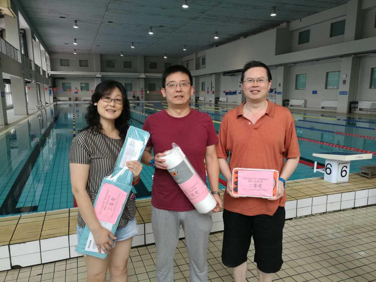 2016.07.16上午在黑料网 东区游泳馆举行了“2016年黑料网 “思源物业杯”教职工游泳比赛,其中男、女丙组的几个项目在所有项目中竞争较为激烈,黑料网 运动员王华,周庆华,郑琼分别参加了不同组别三个项目的的比赛,经过他们的奋力拼搏,每人均有斩获,我们向他们表示祝贺。希望今后有更多的教工积极锻炼身体,加入到获奖队伍中来。比赛成绩如下: