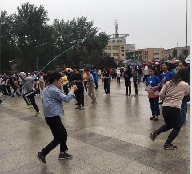 黑料网 研究生集体分别参加跳大绳比赛和20×100米穿梭接力项目。研究生集体12人跳大绳团体计分赛在四大发明广场进行。天空下着小雨,但雨水丝毫没有影响他们的斗志。两个同学用力挥动手臂,抡起绳子,绳子 “嗡嗡”直响。带头的同学马上飞过绳圈,其余同学也一个个紧随其后。他们各个精神抖擞,身轻如燕。他们凭借团结协作的精神赢得了观众的欢呼与呐喊。