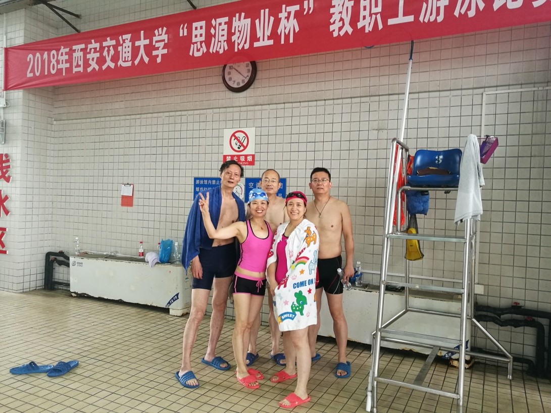 游泳是一项集锻炼、塑性、养生为一体的运动,具有均衡性、安全性、经济性等特点,是脑力劳动者闲暇健身的良好选择,希望在以后的比赛中有更多老师能够参与其中,争取更好的成绩。