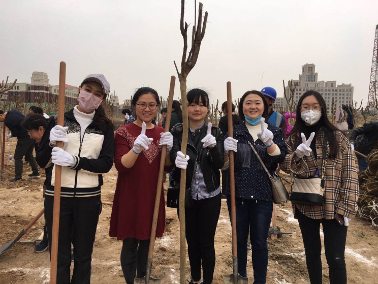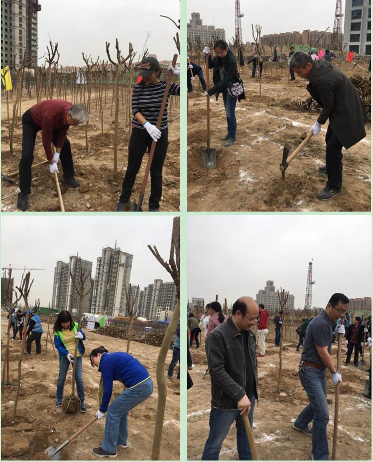 因为要前往新的创业家园,师生们一路兴奋不已。大巴车下了高速路咸阳南收费站,得到了早已在那里等候的创新港建设公司同志们的迎接。他们引导着车辆进入创新港建设工地,到达预定植树区域。一下车,师生们拿起工具,开始挖土、种树、浇水。几个回合下来,即便是平时少有体力劳动的师生也变成熟练工。植树区一片热火朝天的劳动景象。很快,小树苗一个个立起来,成了一片小树林。