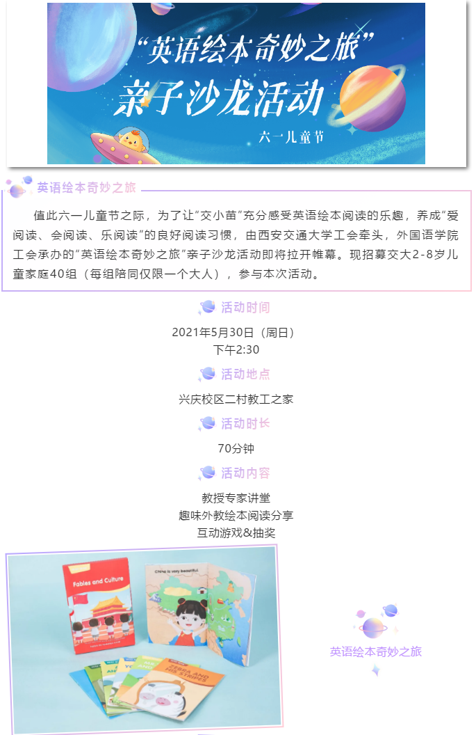 快来报名参加六一儿童节“英语绘本奇妙之旅”亲子沙龙活动!