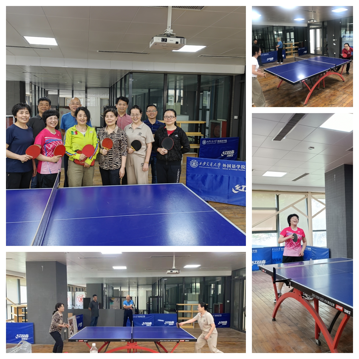 教职工乒乓球友谊赛。此次比赛是校工会 5 月“体育活动月”系列活动之一。