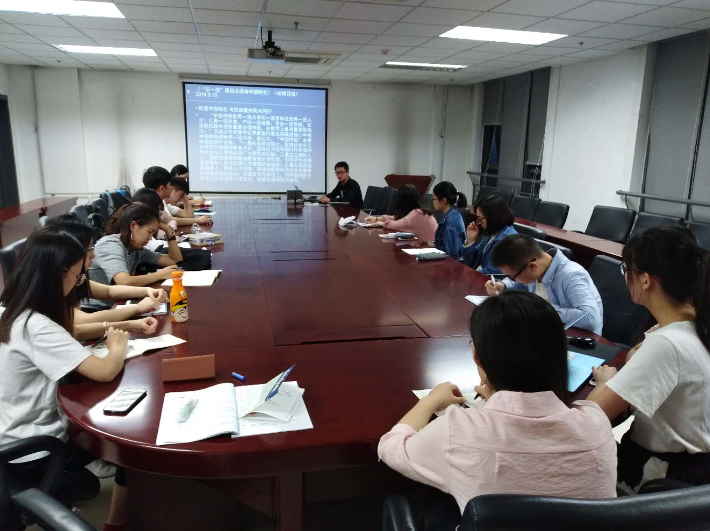 硕2017级党支部在外文楼B912会议室召开“双一流”与学风道德建设组织生活会,马薇老师参加会议。