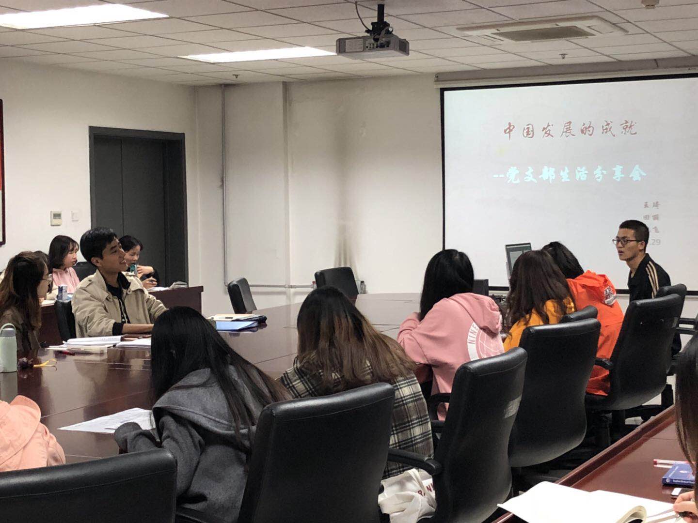硕2018级党支部开展“见证祖国发展成就,弘扬爱国奋斗精神”主题生活会。主讲人分别是王琦、田丽、安旭飞同学。
