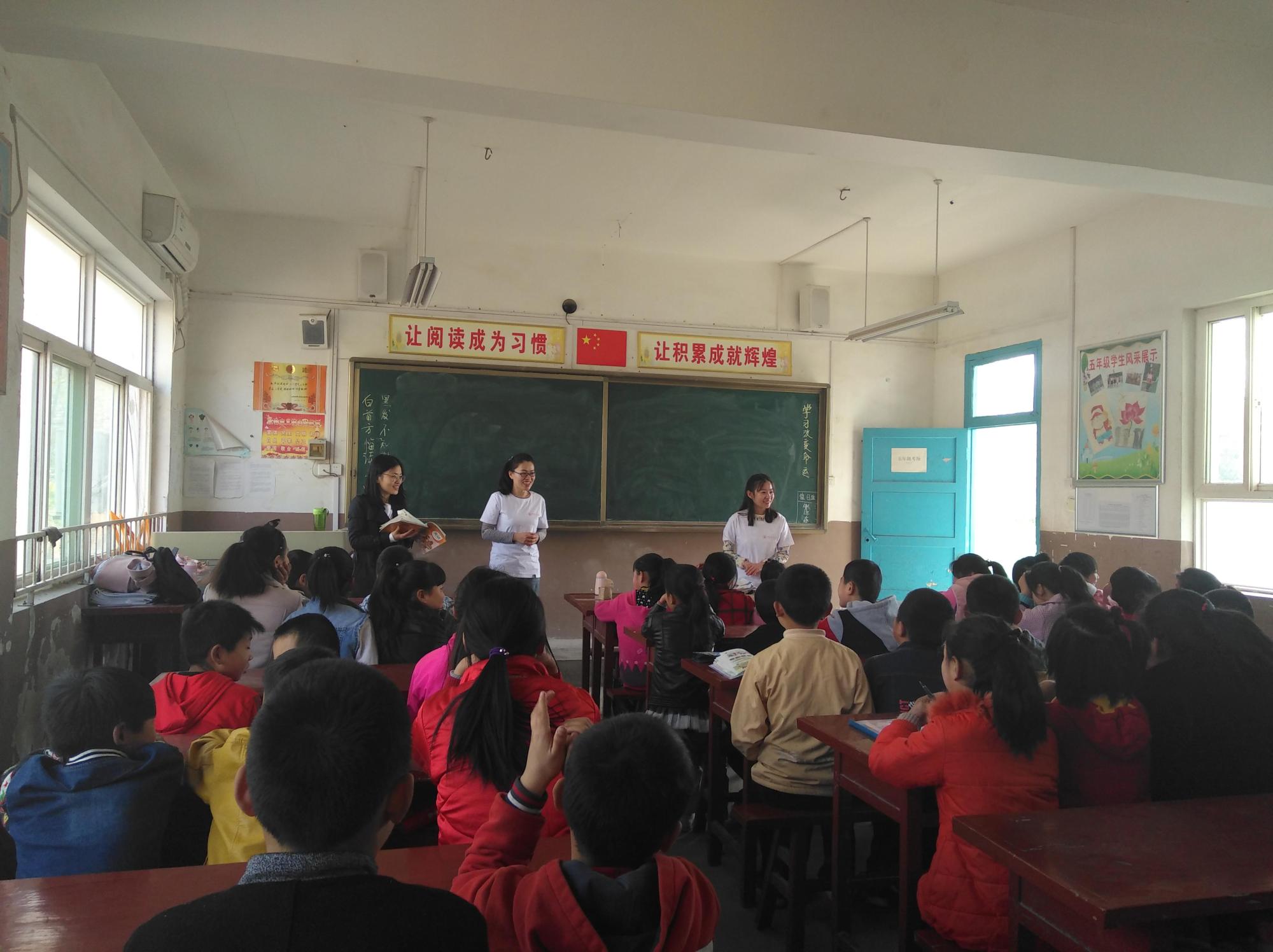 在详细了解学生和学校的基本情况之后,博士党支部的四名博士在校长的带领下走进教室,与学生们就英语学习进行沟通和交流。首先申慧洋同学结合自己目前的研究,就英语读写方法向同学们进行介绍和普及,孩子们虽然有的刚开始接触英语,有的已经有一定的英语基础,然而对于新的学习方法都表现出了浓厚的兴趣和热情。随后,胡莉蓉同学询问了同学们的学习兴趣和现阶段的学习难点,发现单词记忆是学生们普遍面临的问题,在结合自己的学习实践和先行研究的基础上,针对单词的记忆方法提出了几点建议,如同音节记忆法,合成拆分记忆法,单词拼读记忆法,熟读记忆法等。同时,还就如何培养良好的学习习惯与同学们进行了交流和互动,反响强烈。